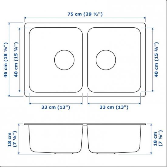 商品名:HILLESJON ヒッレショーン はめ込み式シンク 2ボウル - ステンレススチール 75x46cm