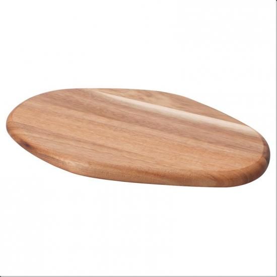 とてもユニークなまな板です。よりサステナブルな調達先から仕入れたアカシア材でつくられ、有機的なフォルムと木目が魅力です。まな板としてだけでなく、サービングボードにもぴったりです