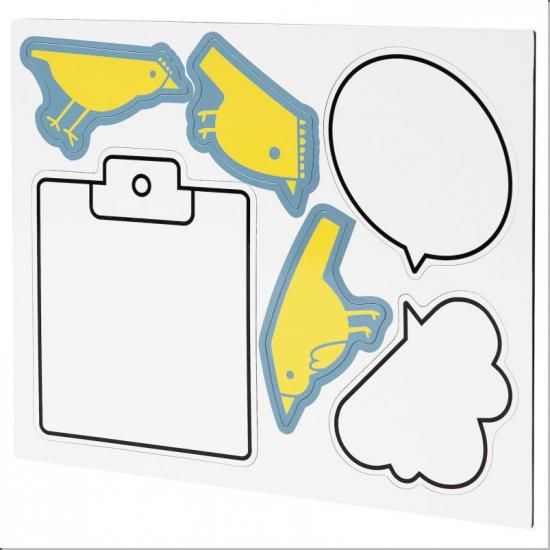このセットには、文字を書けるホワイトのマグネットが3個、かわいい鳥のマグネットが3個付いていて、絵やメモをすっきり整理できます。デコレーションにもなるうえ実用的です