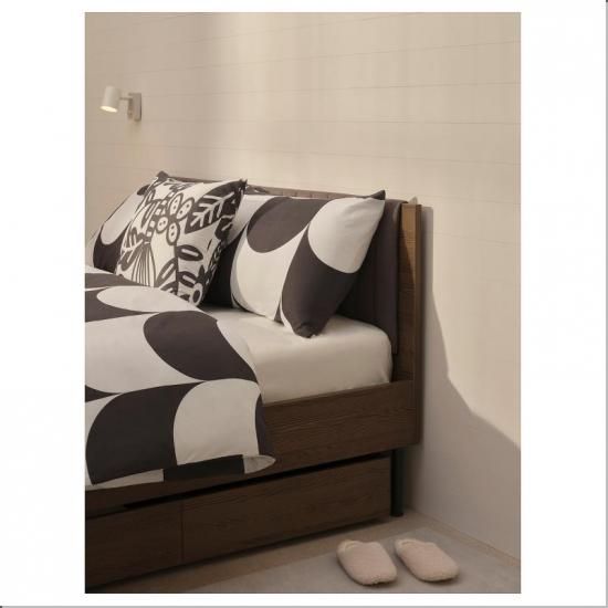 ベッド下にホコリを溜める代わりに、寝具の収納スペースをつくりましょう。 この収納ボックスは、ブラウンのBRUKSVARA/ブルクスヴァーラ ベッドフレームにぴったり合うデザイン。簡単に転がして出し入れできます