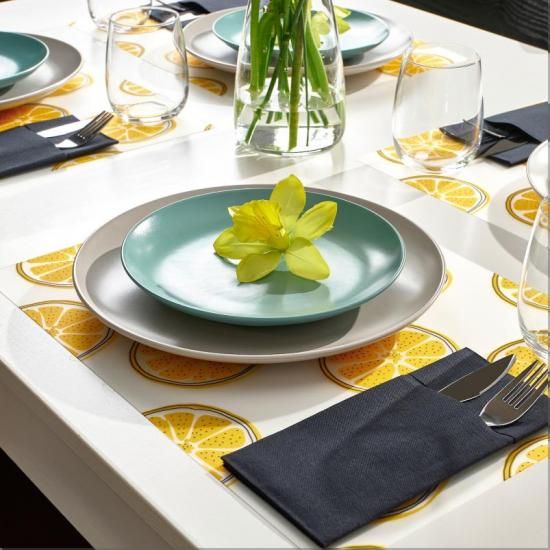 テーブルにランチョンマットを敷けば、より温かみのあるテーブルコーディネートに。毎日の食事でもパーティーでも活躍します